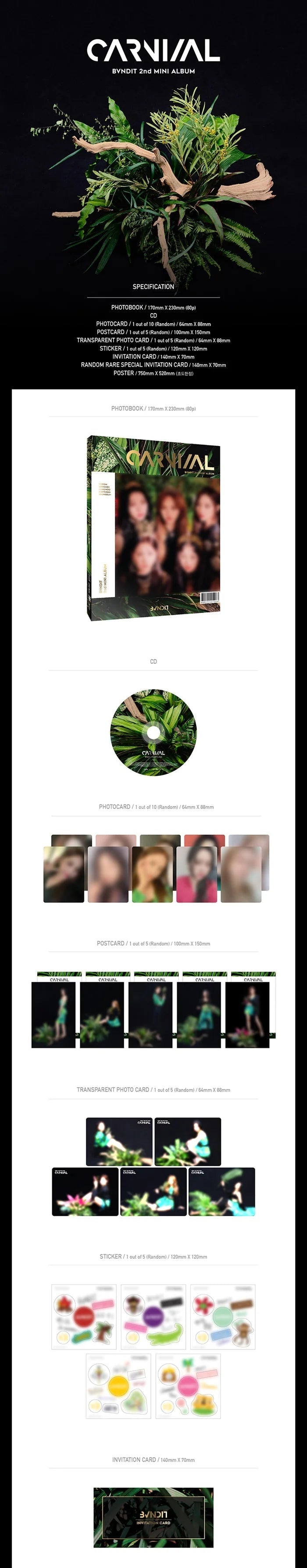 Inclusions: CD, Photobook, Photocard (Random 1 of 10), Postcard (Random 1 of 5), Transparent Photocard (Rnadom 1 of 5), Sticker (Random 1 of 5), Invitation card