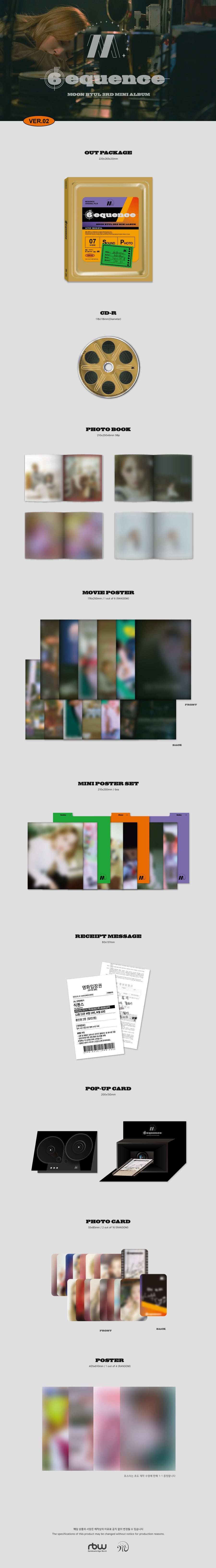 Includes: CD, Photobook, Film Sticker Binder, Film Sticker (Random 1 of 6), Mini Poster Set (Random 1 set of 3), Receipt Message  Pop-Up Card, Photocard (Random 2 of 16)