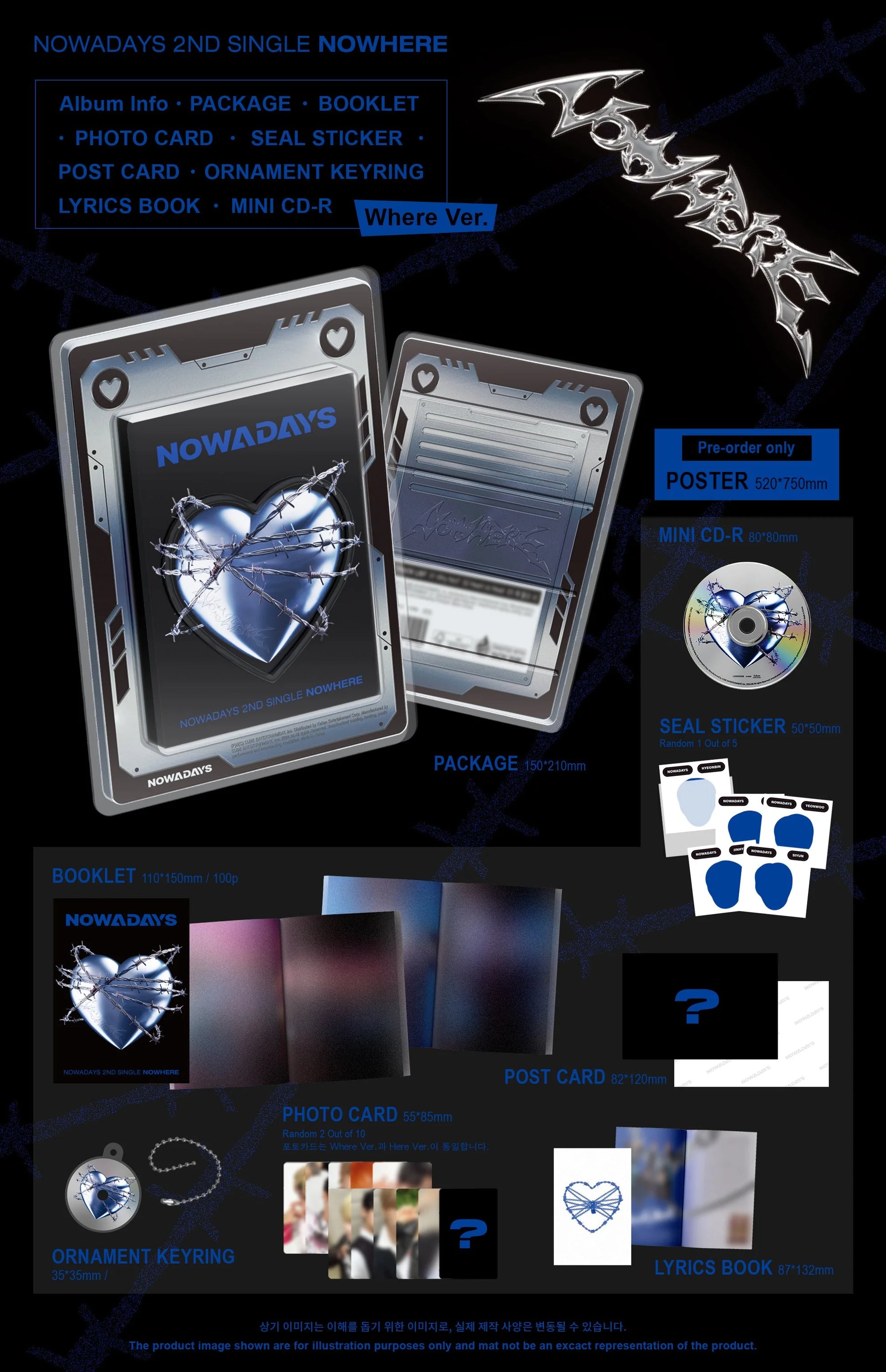 Includes: Package Box, Booklet, Photocard (Random 2), Seal Sticker, Postcard, Ornament Keyring, Lyric Book, Mini CD